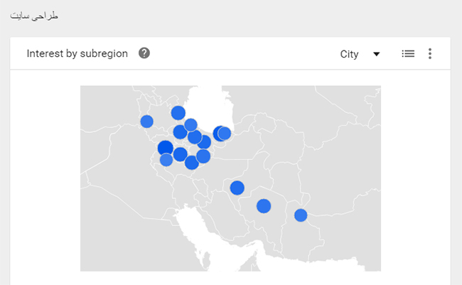 ***نکته: هرچه رنگ های موجود در نقشه پر رنگ تر باشند، به این معنی است که کلمه کلیدی انتخابی شما در آن منطقه محبوب تر است.***